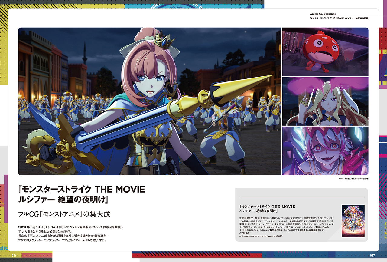 今年の表紙を飾るのは、11/6(金)に公開されたばかりのミクシィXFLAGによる『劇場版モンスト「ルシファー 絶望の夜明け」』。最新のツールやワークフローを用いて、日本人に馴染み深いセル調でありつつもリッチなアニメビジュアルに落とし込んでいます。
