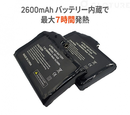 ※連続発熱時間はフル充電時に外気温25度で調査した際の目安です。実際の駆動時間は製品をご利用いただく環境によって変わることがあります。