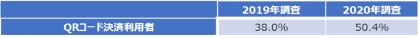 本年調査の結果、QRコード決済の利用者は大幅に増えました。最近6か月間でQRコード決済を利用した人は半数。昨年の38%から大幅な増加です。新たな決済手段としての浸透は早くも進んでいるようです。