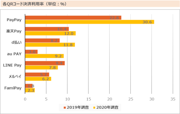 ● QRコード決済利用者は増加、PayPay、au PAYの利用増が顕著