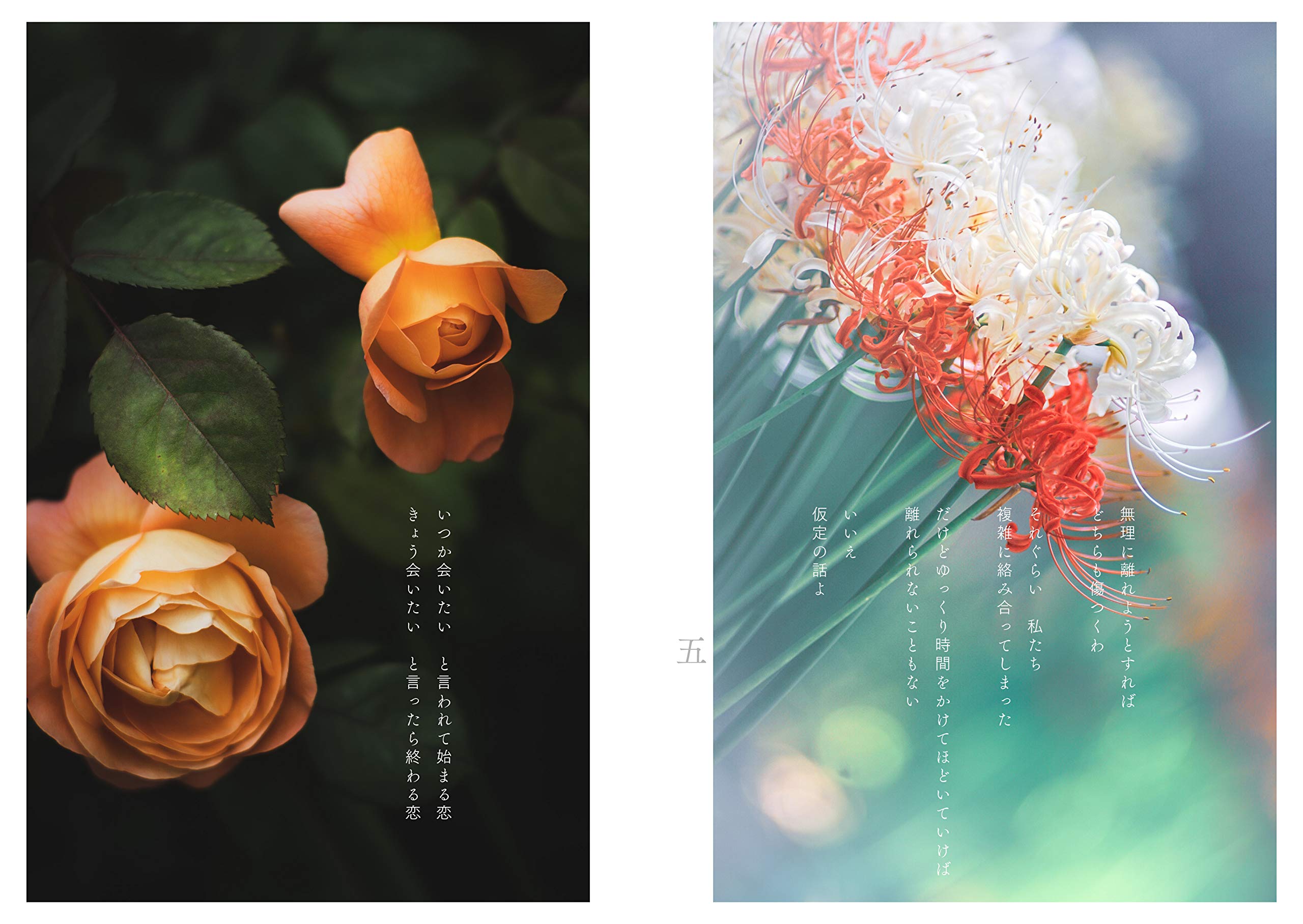 美しい花の写真に添えられた赤裸々なポエム。心の旅をするように
