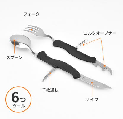 ナイフ、フォーク、スプーンの3つの機能がコンパクトにまとまっています。