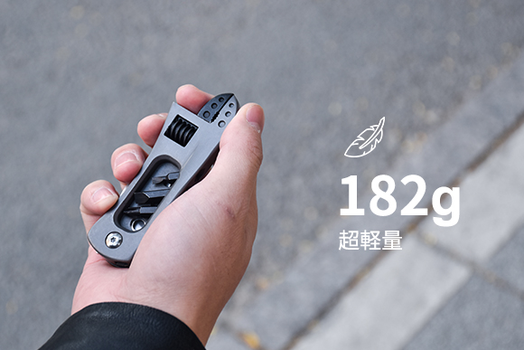 全長97mm、重さたった182gの「Samiconマルチ ナイフ プライヤー」は、多機能ツールの中では最軽量クラスです。
