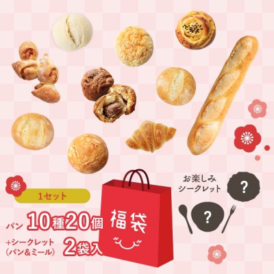 今年の福袋は、中身の見えるアイテムに加え、シークレットパン&パンにあうお惣菜がセットに。パンは、ロングセラーの定番パンから、2020年の新作で特に人気の高かったアイテムを含む計10種をセレクト。さらに、届いてからのお楽しみのシークレットアイテムは、1袋400円以上するワンランク上のパンと、スープやパスタソース、カレーといった人気シリーズ・パンにあう惣菜「Pan&ミール」のアイテム1つが入っています。