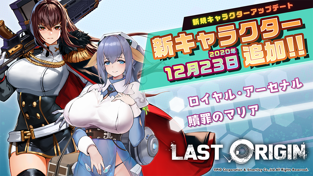 PiG Corporation(本社:韓国ソウル、以下PiG)は、好評配信中の次世代美少女×戦略RPG『ラストオリジン』において、本日12月23日(水)より、新規バイオロイド、<AAキャノニア>SSランク重装型支援機「ロイヤル・アーセナル」と<エニウェアシリーズ>Aランク軽装型保護機「贖罪のマリア」が追加されたほか、クリスマス仕様の新規スキン「一足遅いサンタ(P/A-8ブラックハウンド)」と「真冬の天国(E-16タロンフェザー)」の2体も追加となりましたのでお知らせいたします。