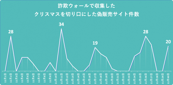 2020年11月度はクリスマスを切り口にした偽販売サイトが増加しました。