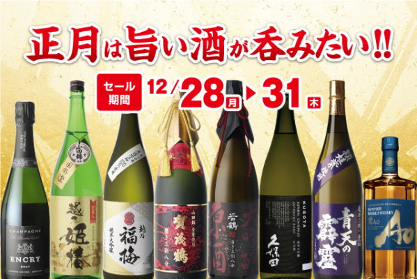 全国に178店舗で酒の専門店をチェーン展開する株式会社リカーマウンテンは、2020年12月28日(月)~31日(木)の4日間、深夜営業店舗などの一部を除く117店舗で『正月は旨い酒が呑みたい!!セール』を開催いたします。