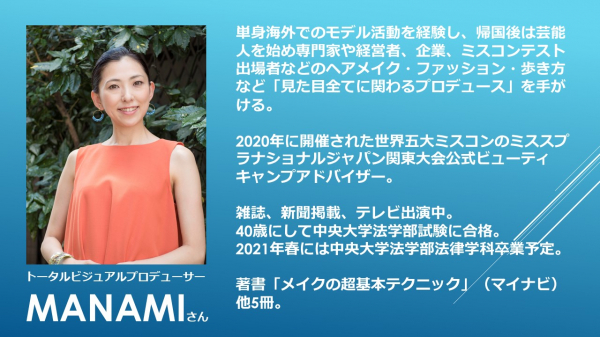 2020年に開催された世界五大ミスコンのミス・スプラナショナルジャパン関東大会公式ビューティキャンプアドバイザー。