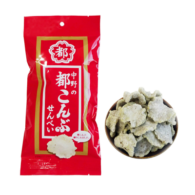 昔ながらのお馴染みの中野物産株式会社の都こんぶをせんべい生地に練り込みました。