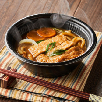 薬師庵株式会社(本社:京都市右京区)は、創業以来、60年間京うどん・そばを作り続けていて、出汁にこだわり、かえし製法のつゆはできるまでに約1カ月かけられています。和風だしの効いたビーフカレーに、贅沢にも九条ねぎをトッピングし、丁寧に炊き上げたカレーうどんです。具材は、玉ねぎ、にんじん、九条ねぎ、油揚げも入っていて、うどんを食べきった後にご飯を入れれば和風カレーライスとしてもお召し上がりいただけます。カップ入りなのでレンジで簡単に昼食や夜食に食べられます。レンジで温めるだけなので便利です。