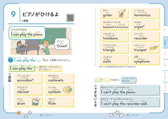 単語の意味やスペルを覚えるだけではなく、カードを入れ替えるように「楽器をひける/ひけない」の表現を繰り返すことで、英作文や英会話にも役立ちます。