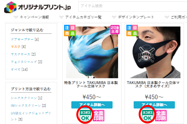 Tシャツやバッグ等 約1800種類のアイテムを使い誰でも簡単にオリジナルグッズの作成・注文ができる「オリジナルプリント.jp(https://originalprint.jp/)」を運営する、株式会社イメージ・マジック(https://imagemagic.jp)は、2021年1月11日からネコポス配送に対応したアイテムを拡大致しました。