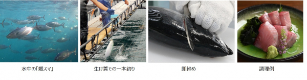 「媛スマ」は、特に養殖が盛んな愛媛県で、養殖「スマガツオ」を包括した愛称として「媛スマ」と命名されました。黒潮の暖かな海流で育まれた「媛スマ」は、生け簀から一本釣りで丁寧に釣り上げ、即締めることにより鮮度が保たれ全国に出荷されています。