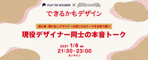 株式会社フィリアンが運営する子育て中のお母さんのためのオンラインスキルスクール「Muse Academy」とスキルアップ特化型デザインスクール「PLAY THE DESIGNER」は、2021年1月8日にコラボイベント「できるかもデザイン」の第二弾としてオンライントークイベントを開催しました。