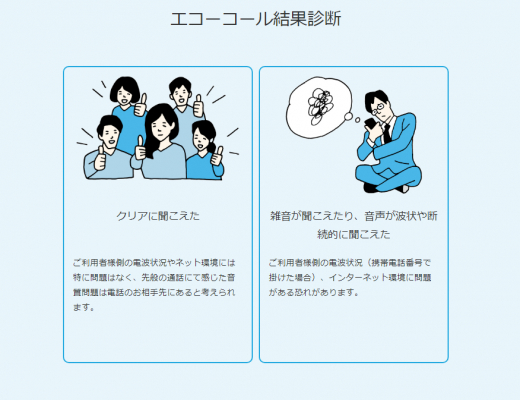 「エコーコール」を大切な商談の前や、顧客へのご連絡の前に利用していただき、安心して通話を開始してください。また、音声品質に不安を感じた時は、「エコーコール」を利用をすることで、適切な対処、迅速な問題解決に繋がることを期待しております。