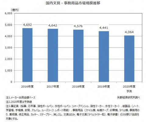 株式会社矢野経済研究所(代表取締役社長:水越孝)は、国内文具・事務用品市場を調査し、商品別の動向、参入企業動向、将来展望を明らかにいたしました。