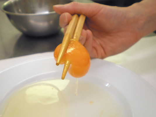 卵の黄身は濃いオレンジ色、手でつまんでも破れないほど。まずはそのまま卵かけご飯で、濃厚な昔懐かしい卵の味わいをお楽しみいただくことをおすすめします。
