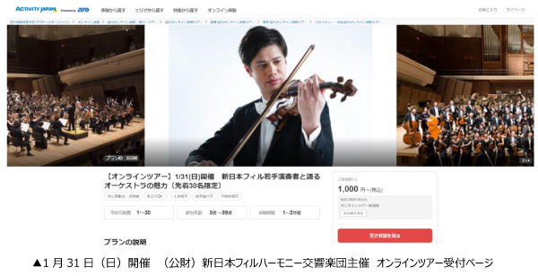 この度、公益財団法人 新日本フィルハーモニー交響楽団主催のオンラインツアーの予約受付を2021年1月20日(水)より開始いたしました。