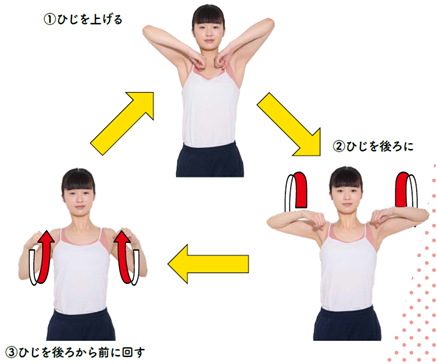 やり方は、うで、足をそれぞれ“ぐるぐる”回すだけ!それを朝晩30秒ずつ行えばOKです!