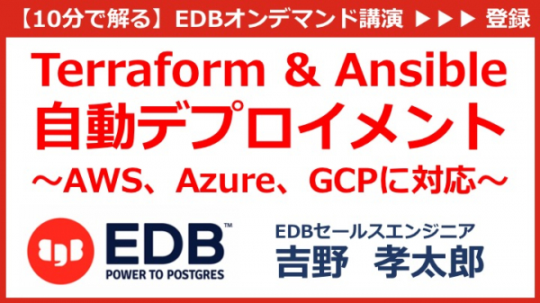 今回のセミナー動画は、2020年9月にEDBウェビナーでご紹介したTerraformとAnsibleによる自動デプロイメント(AWS編)の続編です。