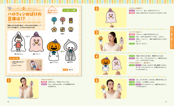 一年を通して楽しめるテーマでたっぷり40作品! 集まりやちょっとしたすき間時間に取り組める「通年使える短い作品」をはじめ、入園式や七夕、ハロウィンなど「季節・行事がテーマの作品」、食育や歯みがきといった「保育生活がテーマの作品」の3つにわけてご紹介します。現場の先生の声から選ばれた、どれもすぐに使えるものばかりです。