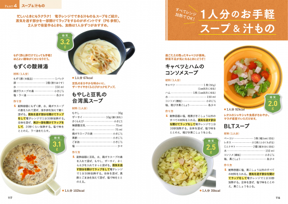 すべてレンジ加熱でOK! 1人分のお手軽 スープ&汁もの