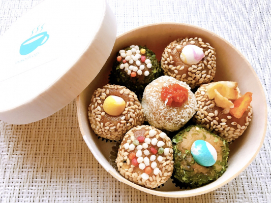 青のり、ゴマ、麩、柚子胡椒、乾燥野菜などでデコレーションした華やかな「misodrop」7個入り。すべての具材も植物性の材料で作られた、うま味たっぷりのmisoスープです。