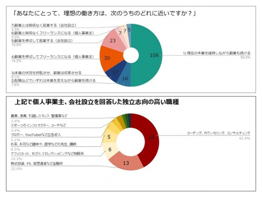 独立志向が高い職種 (「副業を伸ばしてフリーランスになる(個人事業主)」「副業を伸ばして起業する(会社設立)」)
