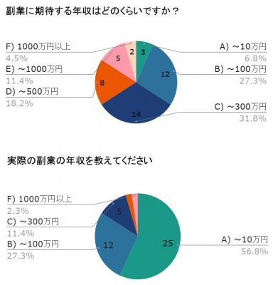 ・コーチング系副業から独立を考える人は多くいますが、実際にはお小遣い稼ぎにもならない金額で副業にしている人が多く、それが副業への不満となって現れている、というのが今回の調査で浮かび上がりました。