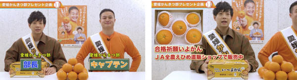 愛媛かんきつ部キャプテン&部長のティモンディが受験生へエール!合格祈願いよかんプレゼントも!