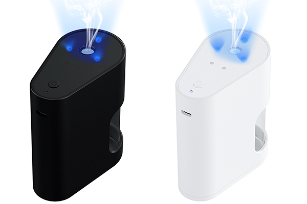 本製品は超微細なミスト状のアルコールを噴出します。噴出量は約40~60ml/hとなっており、一般的なポンプタイプのアルコールディスペンサーと比較して、噴出後に手がベタつきにくいのが特長です。ミスト状のため、設置場所の周囲が飛び散ったアルコールで汚れることもありません。本体サイズも高さ約10cmほどと非常にコンパクトなため、デスク周りやお手洗いなど、置き場所も選びません。身近なところに設置して、“こまめに消毒”をおすすめいたします。