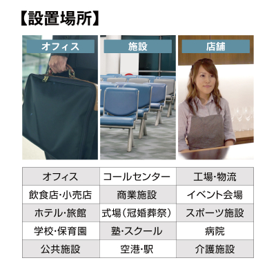 ・おでこ、手のひらで温度測定(約1秒のスピード対応で人の流れがスムーズ)