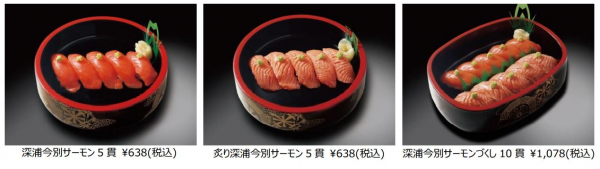 「銀のさら」の人気商品である「深浦今別サーモン」を、キャンペーン期間中、特別価格で販売いたします。5貫セットを2種類、またそれらを組み合わせた10貫セットを、期間限定でお得にお召し上がりいただけます。