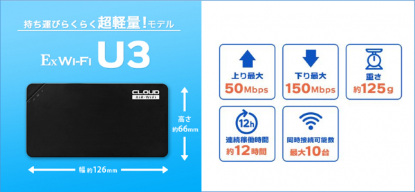 テレワーク等の在宅勤務によるWi-Fiのニーズが高まっている中、ポケットWi-Fiをより安くご利用いただけるよう、”Ex Wi-Fi CLOUD(エクスワイファイクラウド)”の料金プランを「50GBで月額2,680円(税抜)」に値下げしました。