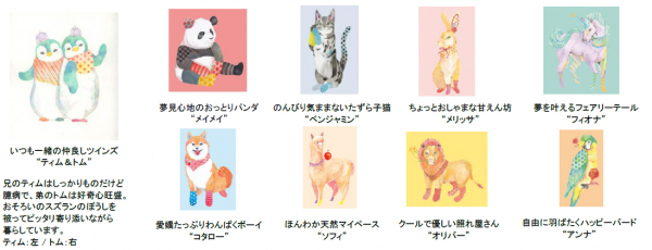 パフュームスティックを彩るのは、可愛らしく個性的な動物たち。みんな自慢の名前をもっています。