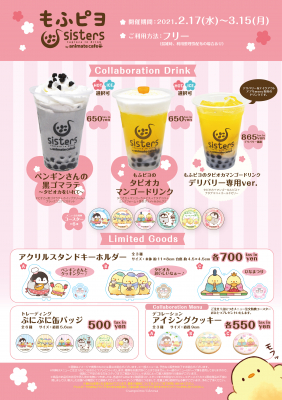エイノバ株式会社(本社:東京都千代田区、代表取締役社長:安倍義人)のマネジメントするクリエイター"さんぽいも"が描く人気キャラクター「もふピヨ」が株式会社アニメイトカフェが運営するタピオカドリンク専門店「sisters」(東京都:池袋)と期間限定でコラボメニューを販売します。