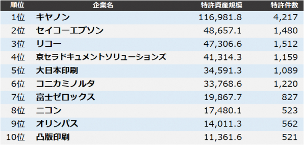 その結果、1位 キヤノン、2位 セイコーエプソン、3位 リコーとなりました。