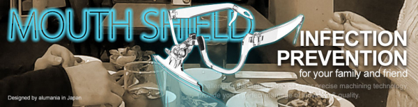 そこで【フラップ式らくらくマウスシールド】は、メガネタイプのフレームで保持し口の全面を大きく覆うシールドを可動させることによって会食中に装着したまま飲食ができる新感覚のマウスシールドとなっている。なによりも大切なご家族や友人と一緒に飛沫感染対策しながら会食を快適に楽しむためのアイテムとして重宝しそうだ。