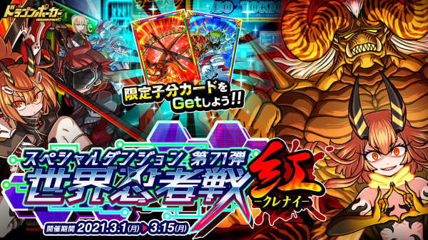 株式会社アソビズム(本社:東京都千代田区、代表取締役:大手智之)は、App Store・Google Playにて好評配信中のリアルタイム合体カードバトル『ドラゴンポーカー』で、2021年3月1日(月)より新スペシャルダンジョン「世界忍者戦・紅」を開催いたします。