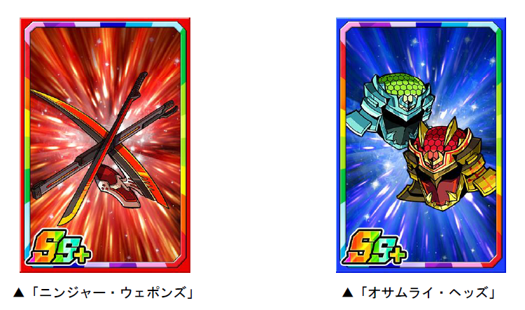 ダンジョンのボスモンスターを倒すと、まれに新たな限定子分カード「ニンジャー・ウェポンズ」「オサムライ・ヘッズ」が手に入ります。