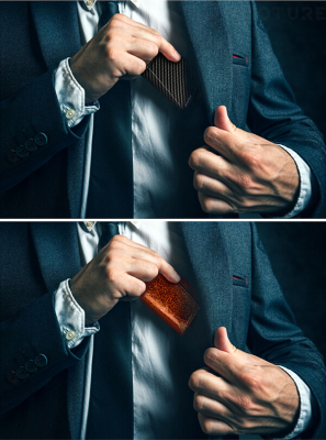 スーツやスーツやジャケットの内ポケットにスルリと入るデザインです。