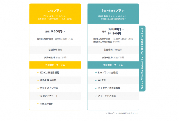 ec-cube.coスタンダードプランの詳細(従来プランとの比較)