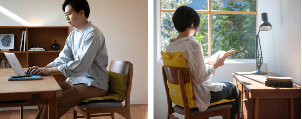 応援購入サイトMakuakeにて、集中モード、リラックスモードの2WAY式で、座り姿勢を正しくアシストする椅子専用座布団「イスザブ」の 新色6色を、2月17日(水)より先行発売しました。