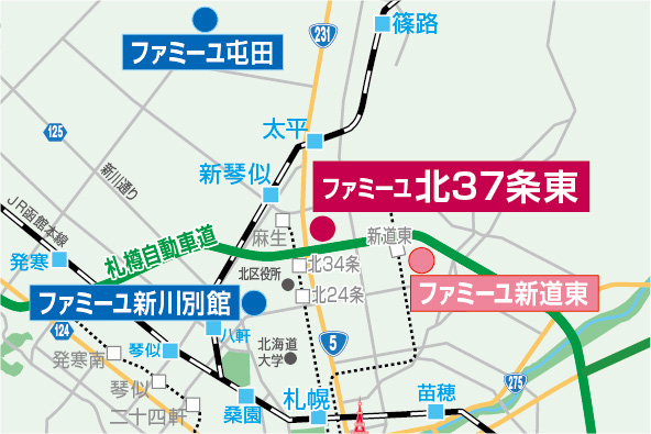 アクセス :・札幌市営地下鉄南北線「麻生駅」・「北34条駅」からともに車で約5分