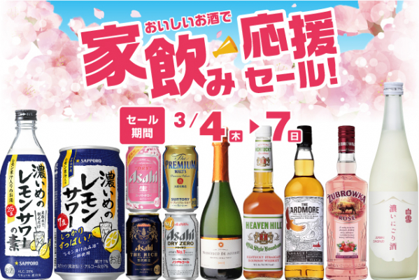 全国に178店舗で酒の専門店をチェーン展開する株式会社リカーマウンテン(本社:京都市)は、3月4日(木)~7日(日)の4日間、深夜営業店舗を除く117店舗で「お家飲み まとめ買い応援セール」を開催いたします。