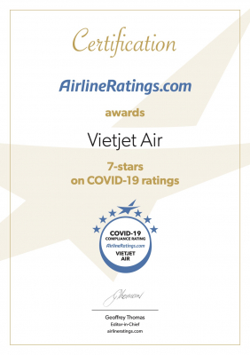 (東京、2021年3月4日) - ベトジェットは、エアラインレイティングス(AirlineRatings)により、世界の航空会社の中でCOVID-19対応に関し世界最高評価である7つ星の認定を受けました。