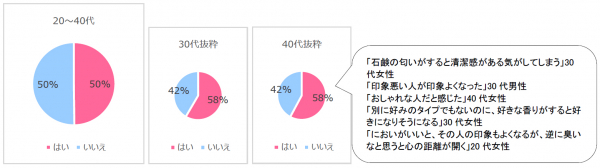 ー全年代では、2人に1人の割合で「香りで第一印象が変わったことがある」に「はい」と回答。