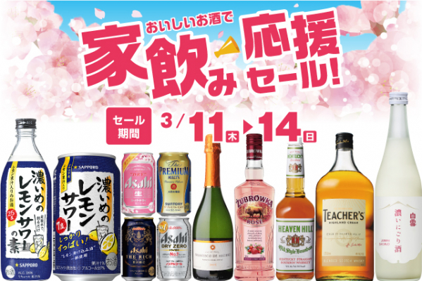 全国に178店舗で酒の専門店をチェーン展開する株式会社リカーマウンテン(本社:京都市)は、3月11日(木)~14日(日)の4日間、深夜営業店舗を除く117店舗で「美味しいお酒で家飲み応援セール 第2弾」を開催いたします。