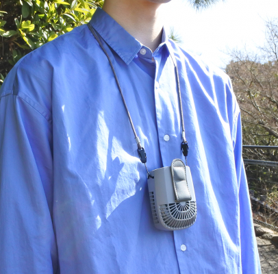 また、リュックのショルダーベルトに付けたり、付属のストラップで首から提げてスポットファンとしてもご使用いただけます。