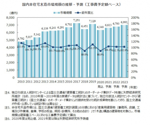 株式会社矢野経済研究所(代表取締役社長:水越孝)は、国内非住宅木造市場を調査し、市場規模、セグメント別動向、将来展望を明らかにいたしました。